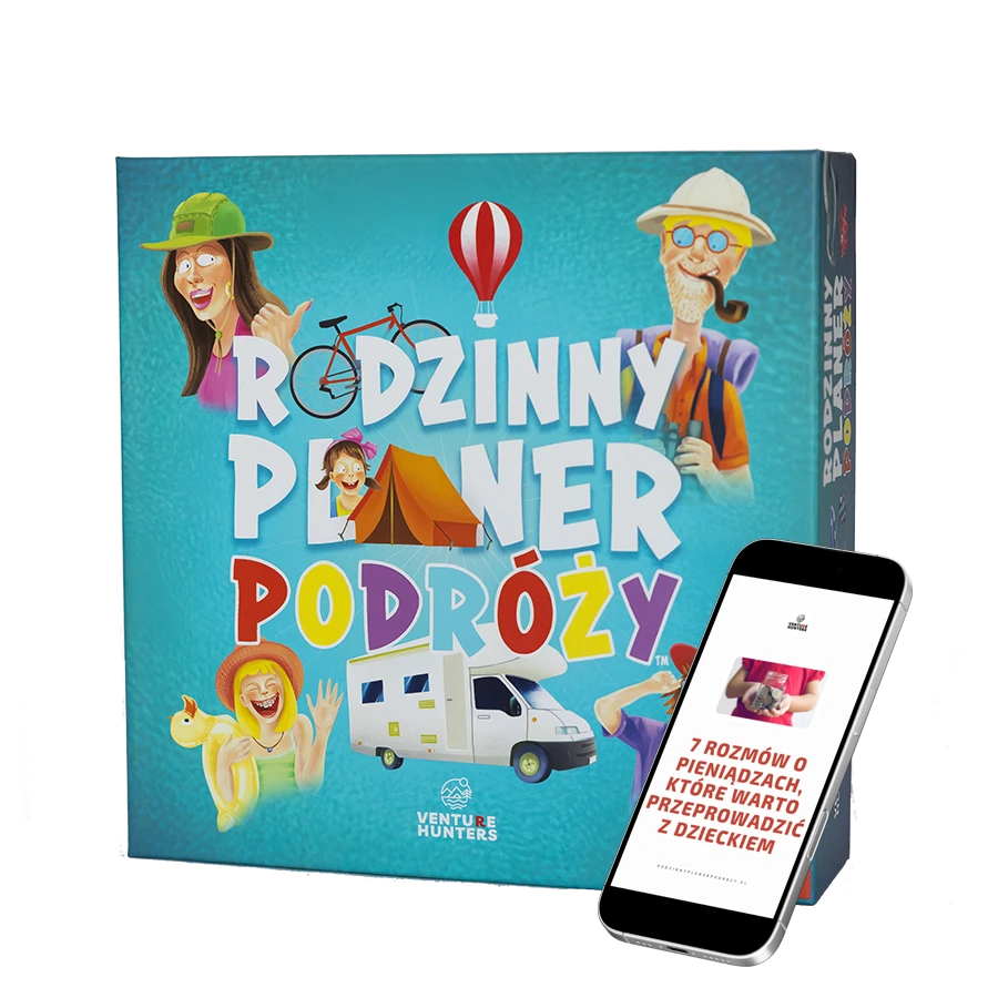 Rodzinny Planer Podróży to planer-planszówka w jednym, która uczy dzieci finansów, planowania, rozmowy i kompromisów.